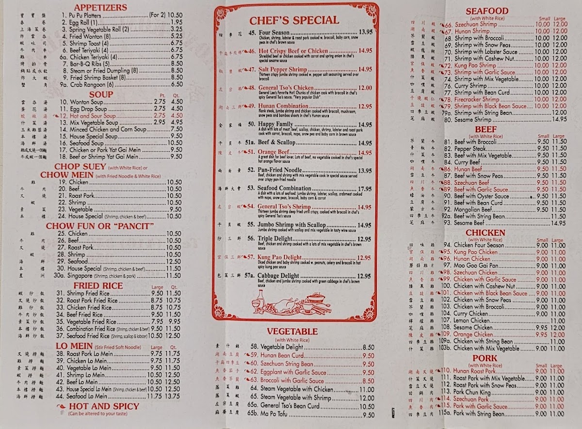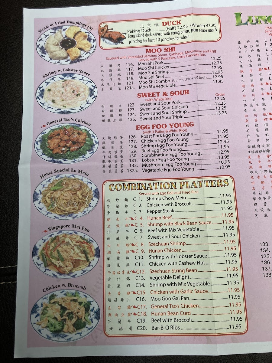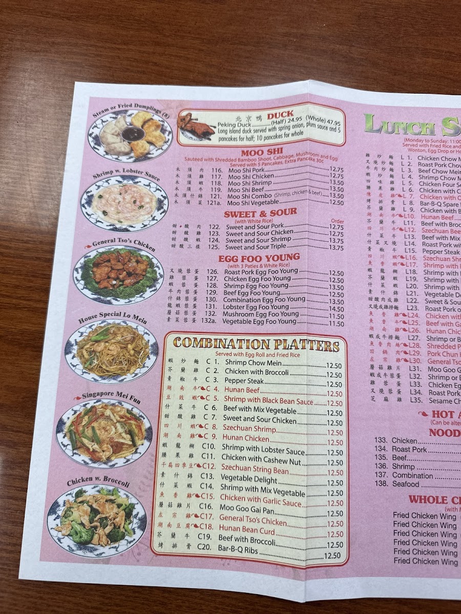 You'll find a variety of familiar flavors across several categories, like tender chicken dishes with options ranging from Szechuan Chicken to Lemon Chicken, each delivering a balanced mix of savory and subtly spiced notes. The noodle soups offer something soothing and warm, perfect for cooler evenings or whenever you're craving something hearty yet light. Seafood and shrimp preparations bring in fresh, delicate tastes that complement the more robust chicken options.